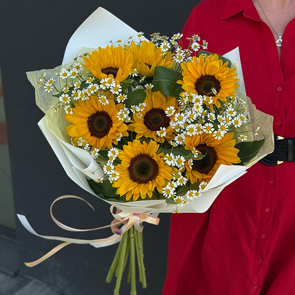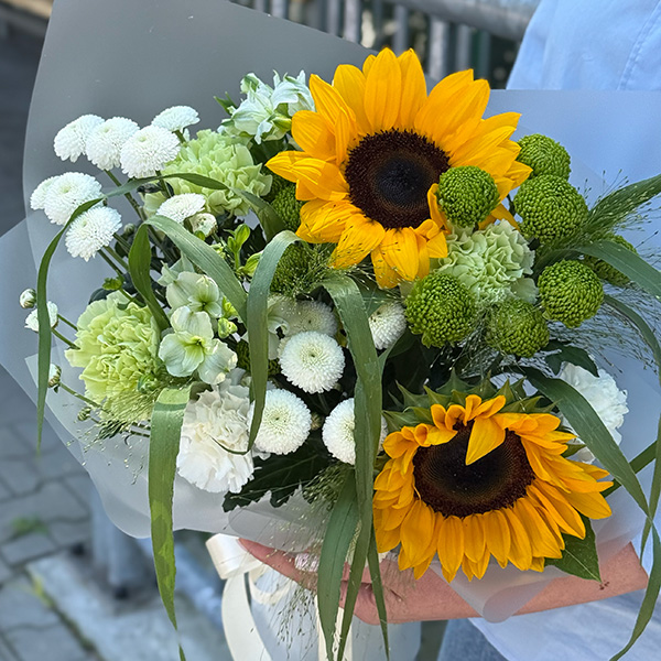 Można kupić klasyczny bukiet, a także bukiet w postaci serca, wieńca (na przykład wielkanocnego) lub znajdujący się w koszyku.