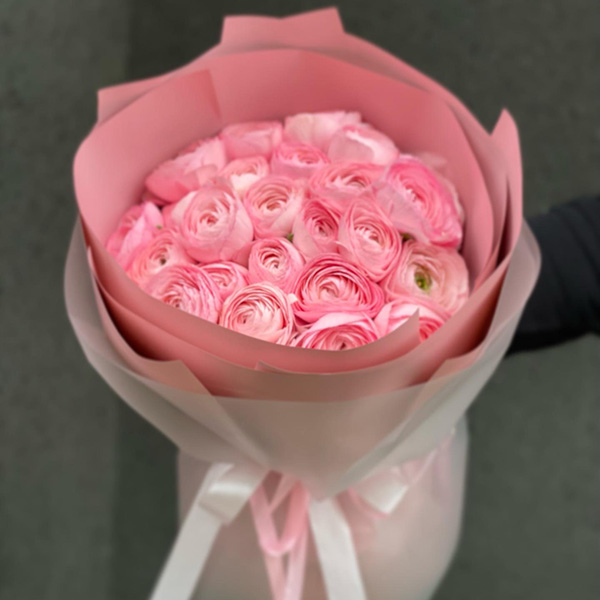 Bukiet z 11 (PODSTAWOWY), 25 (ŚREDNI), 51 (DUŻY) jaskrów różowego koloru