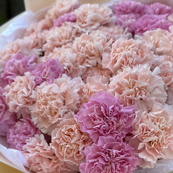 Bukiet składa się z 19 (mały), 28 (średni), 42 (duży) goździków różnych odmian