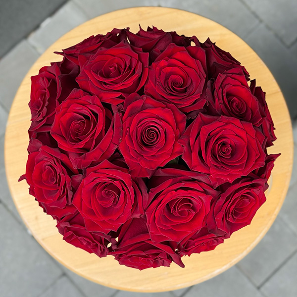 Flower Box z 15 (mały), 21 (średni) lub 28 (duży) czerwonych róż