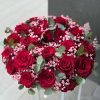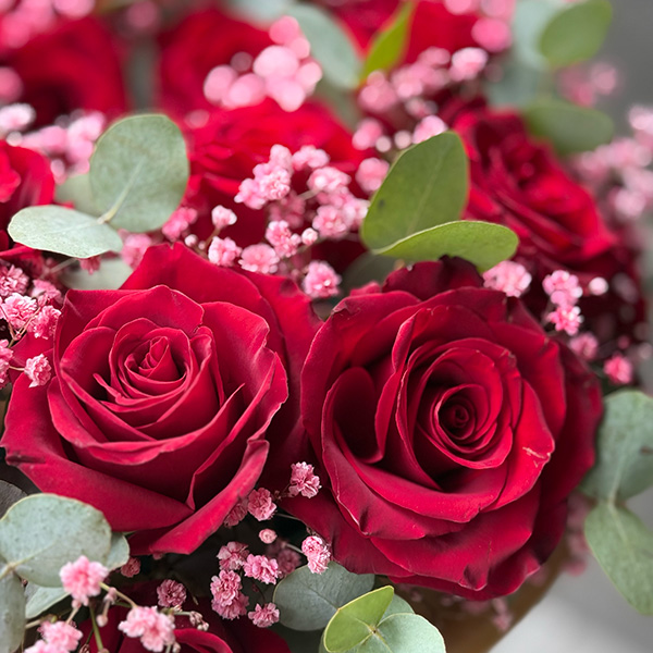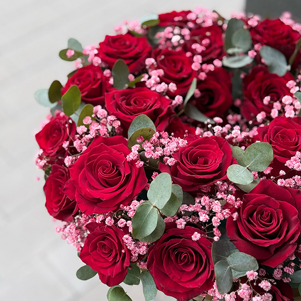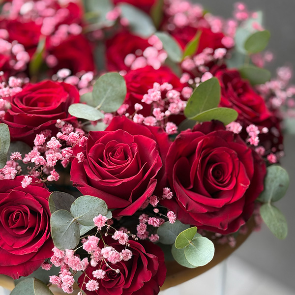 Wieniec nagrobny z róż, gipsówki i eukaliptusa rozmiar M
