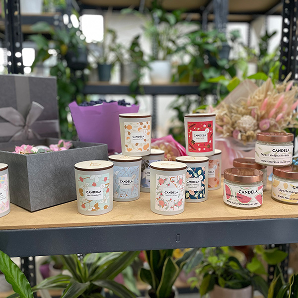 Zestaw upominkowy to pudełko z wieczkiem zawierające: 1 – kompozycję kwiatową (kolor i zestaw kwiatów można omówić z florystką – postaramy się spełnić wszystkie Państwa życzenia); 2 – świeca zapachowa sojowa (Fig and Blackcurrant, Mandarin and Truffle, Peony, Spicy Vanilla, Herbal Field, Prosecco, Aperol o’clock); 3 – masło shea do ciała (zapachy: zielona herbata, czekolada, mango, arbuz)